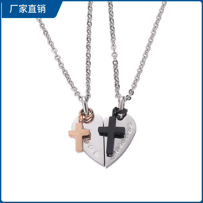 Couple Necklace ins High-color Titanium Steel Creative Cross Heart-shaped Stitching Pendant Niche Design Sense Collarbone Accessories