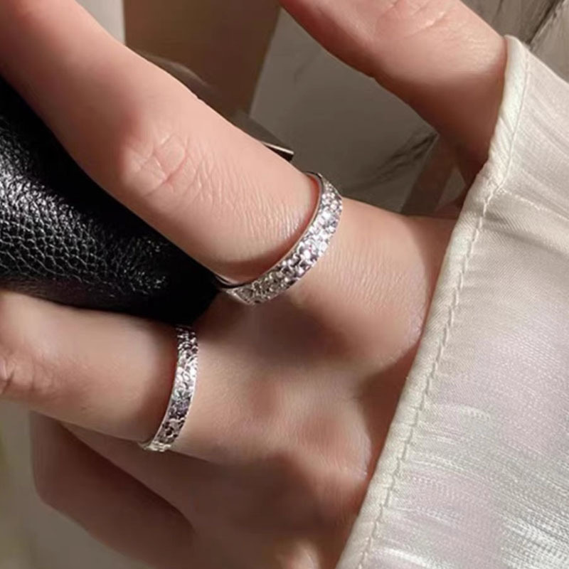 Tiqi S925 sterling silver niche design irregular broken ice ring fashion personality diamond flash open ring