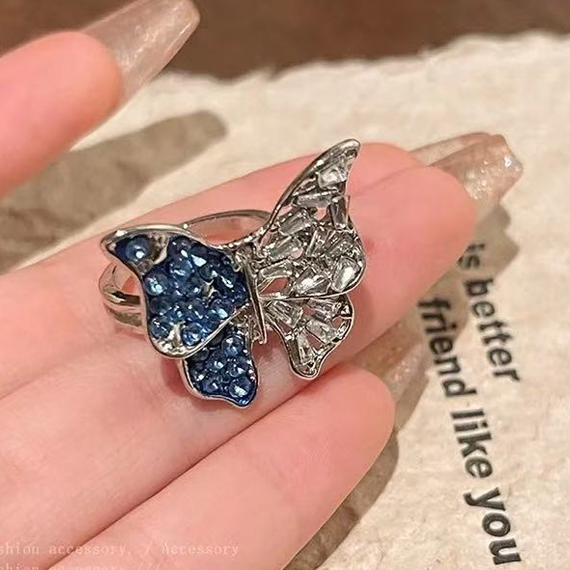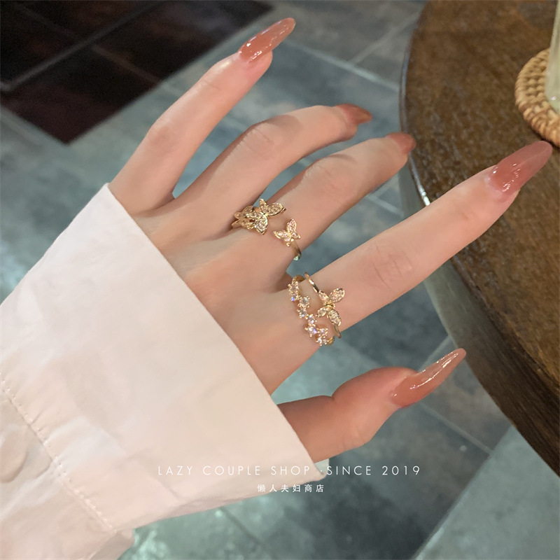 New Copper Inlaid Zircon Opening Heavy Industry Butterfly Fashion Micro Inlaid Light Luxury Ring Food Finger Ring Internet Celebrity Same Style Cold Style