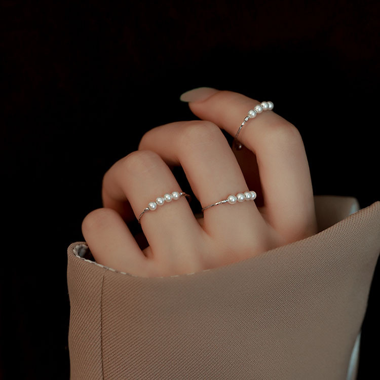Japanese and Korean imitation pearl ring women's simple personality European and American fashion adjustable opening index finger ring wholesale generation