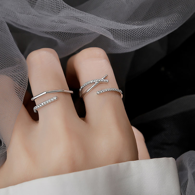 Rising Sun Micro-inlaid X-shaped Cross Ring Women's ins Simple Niche Korean-style Polygonal Open Index Finger Ring Jewelry