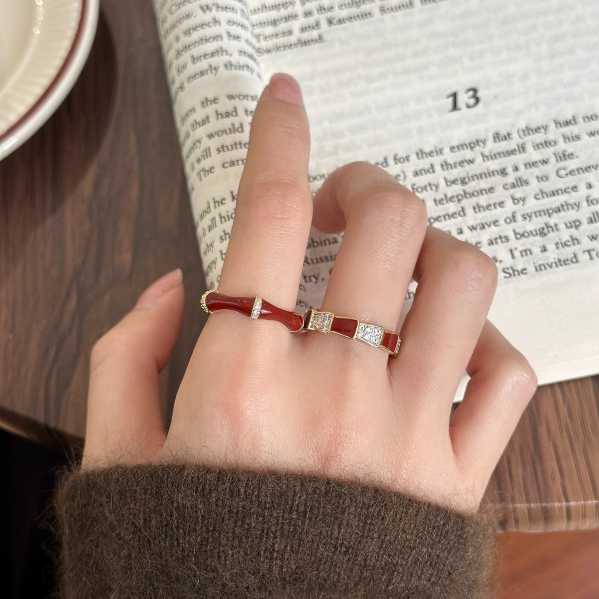 Korean fashion niche heavy industry multi-beaded temperament ring autumn and winter with high-end all-match ring women