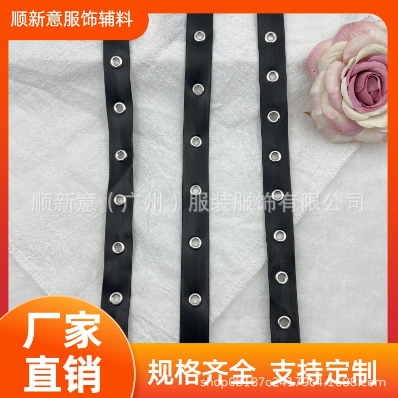 Black Pu Leather Eyelet Webbing with Perforated Eyelets for Shoes, Hats, Bags, Accessories, Clothing DIY Materials Barcode