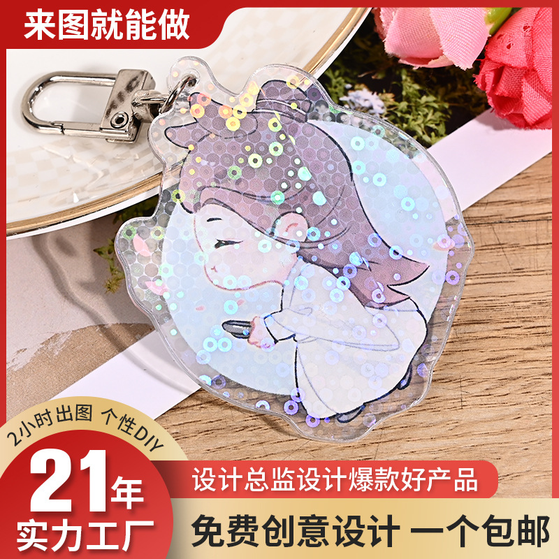 Q Cute Version of Cartoon Animation Creative Photo Pendant Acrylic Glue Glitter Laser Key Printing