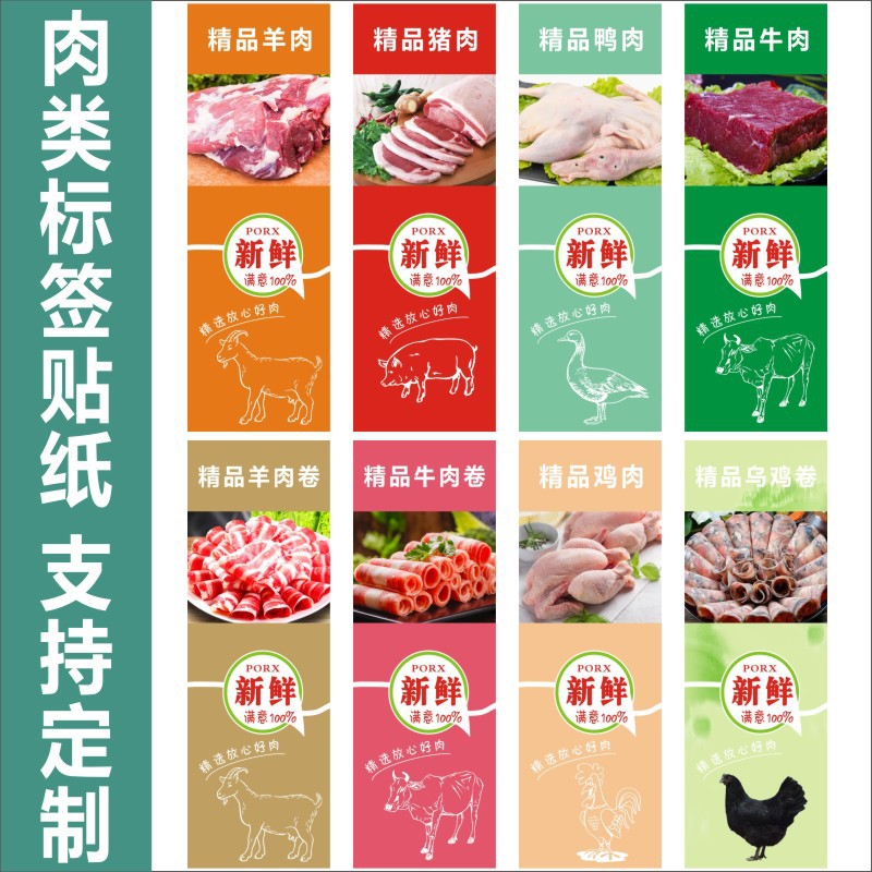 Premium Lamb Pork Beef Beef Roll Chicken Black Chicken Roll Self-Adhesive Label Sticker Supports Printing Q