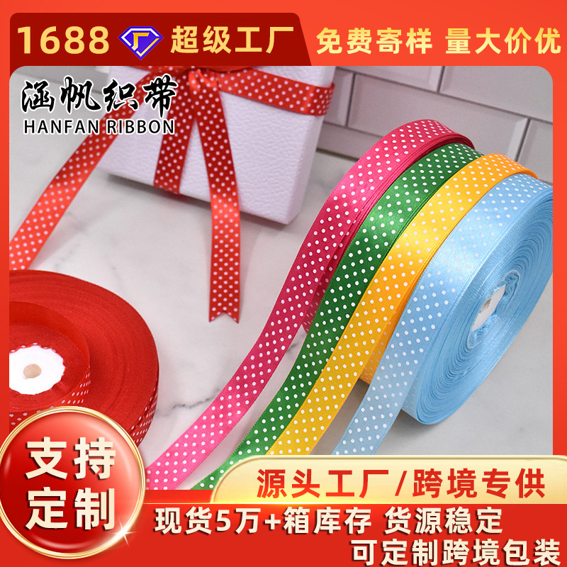Hanfan Webbing Ribbon Spot Colorfulful Polka Dot Ribbon Polka Dot Webbing Gift Decorative Ribbon Processing and Printing Logo