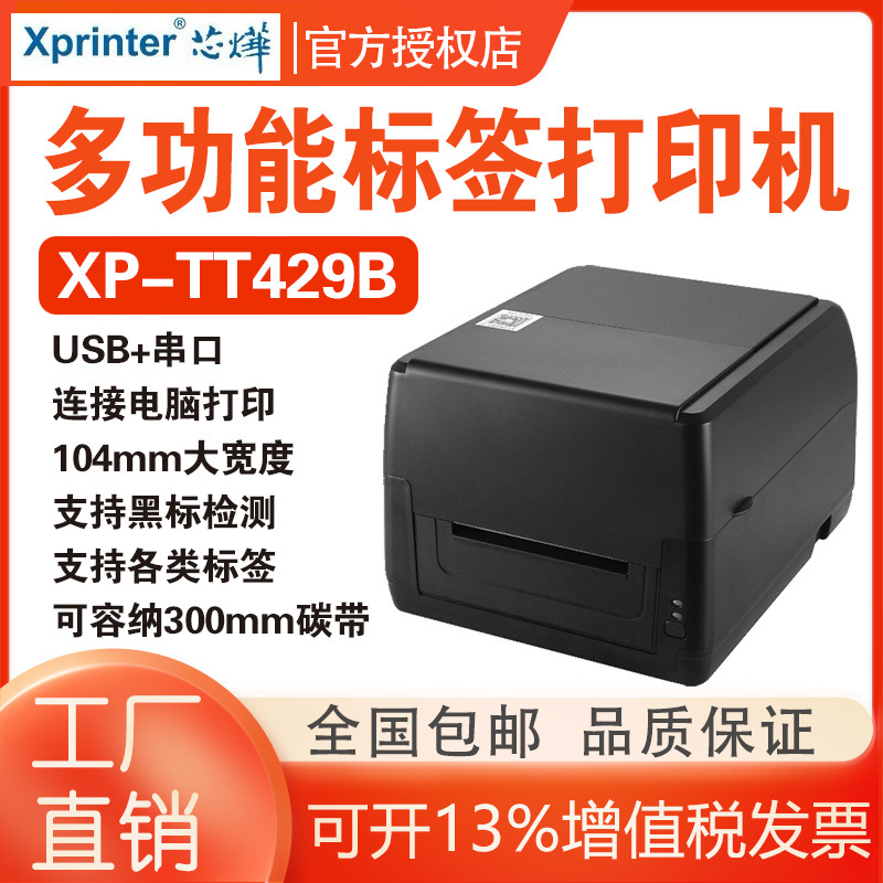 Xinye XP-TT429B thermal transfer label printer clothing tag wash mark sticker barcode jewelry