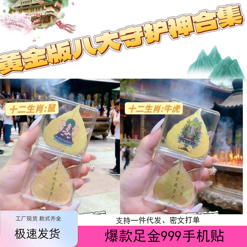 Pure Gold 999 Gold Mobile Phone Stickers Eight Patron Saints Gold Stickers Color Printing Pure Gold Mobile Phone Stickers Gifts Wholesale
