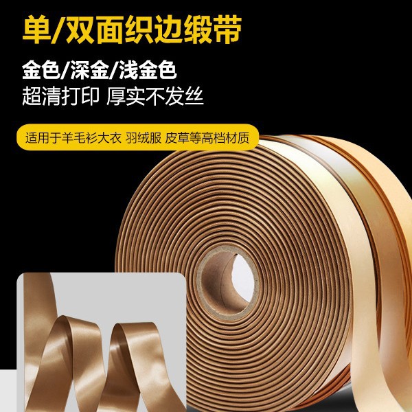 Gold Washed Label Webbing Satin Ribbon Washed Label Coffee Camel Blank Double-Sided Printing Barcode Webbing Ribbon