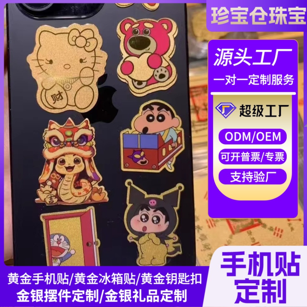 Color Printed Gold Phone Stickers, Creative Stickers with Cartoon Strawberry Bear and Crayon Shin-Chan Designs, Cute Style New Year's Eve Gifts
