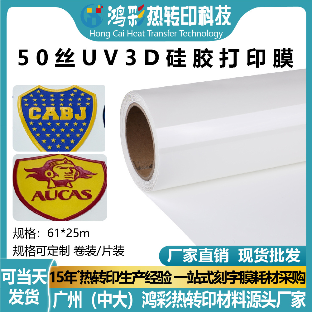 3D Stereo Uv Printing Silicone Film Clothing Signage Coaster Personalized Washable Label Thermal Transfer Stereo Silicone Heat Transfer Film