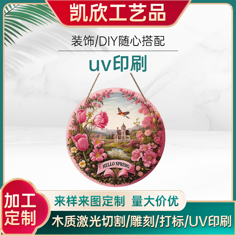 Uv Printing Wooden Round Logo Creative Decorative Plaque Crafts Pendant Digital Inkjet Printing Custom-Made Uv Printing