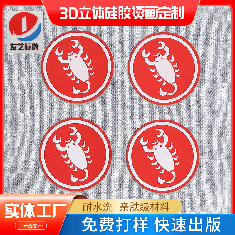 Silicone trademark logo custom wash mark printing clothing thermal transfer printing 3D stereo turn hot label manufacturers