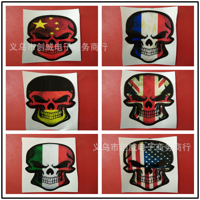 Cross-border car stickers reflective printing digital skull car stickers graffiti cover scratches car body stickers color flag stickers