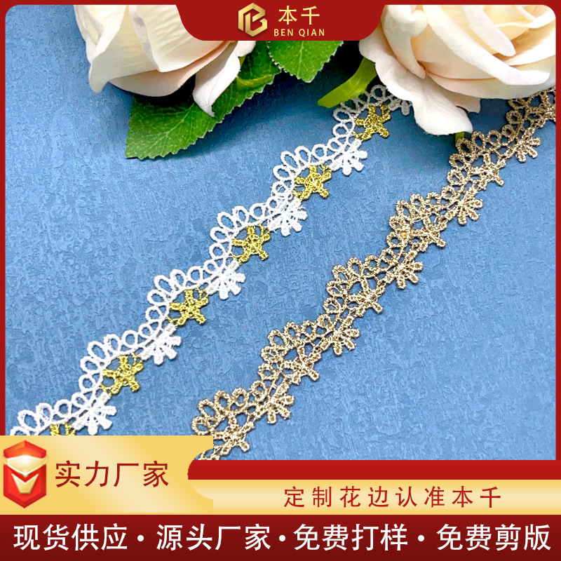 Golden lace gold thread bar code small flower 2cm Lolita skirt accessories computer embroidery lace fabric