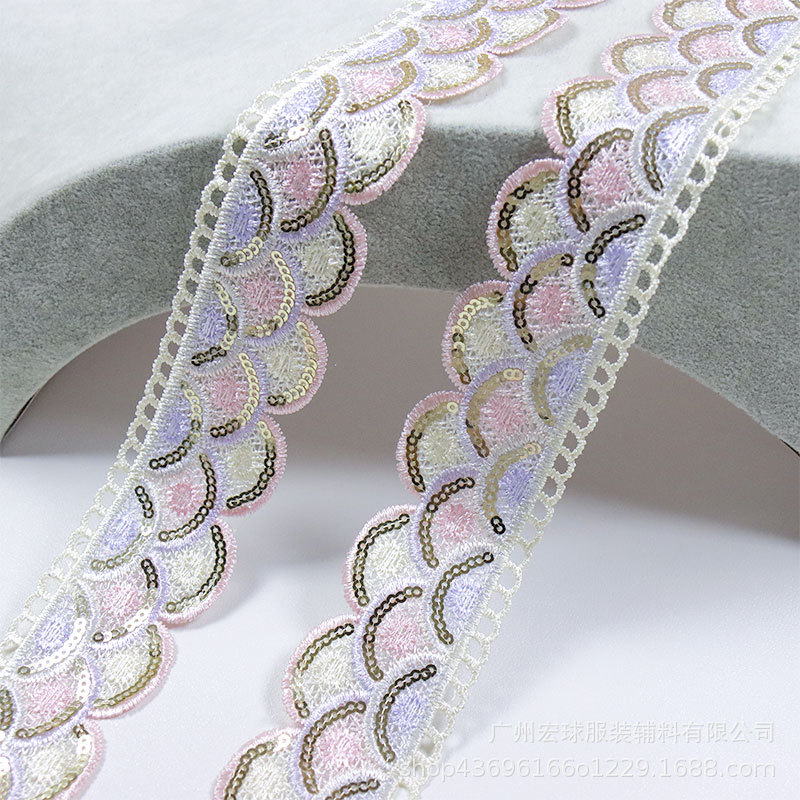 New Computer-Embroidered Sequin Lace Barcode Ethnic Style Lace Accessories Velvet Ribbon Clothing Decoration Accessories