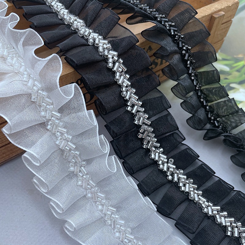 Wholesale organza pleated folding computer beaded embroidery glass bead tube lace imitation handmade bar code Lolita lace