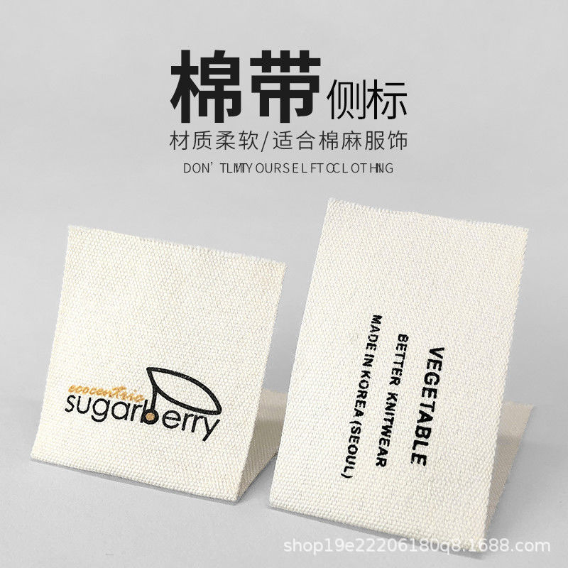 Pure cotton wash label cloth label factory wholesale washing label production this white bleached cotton belt silk screen printing