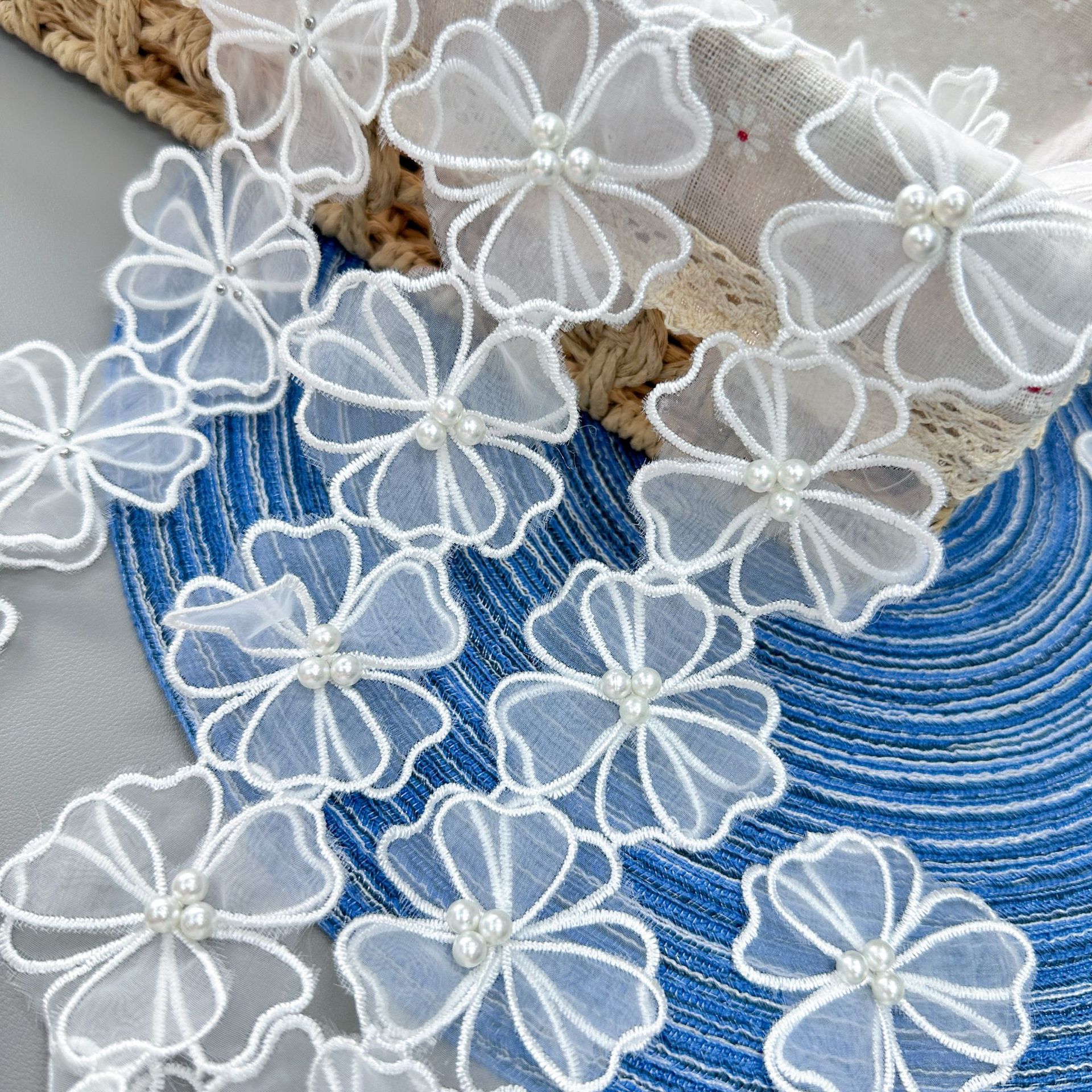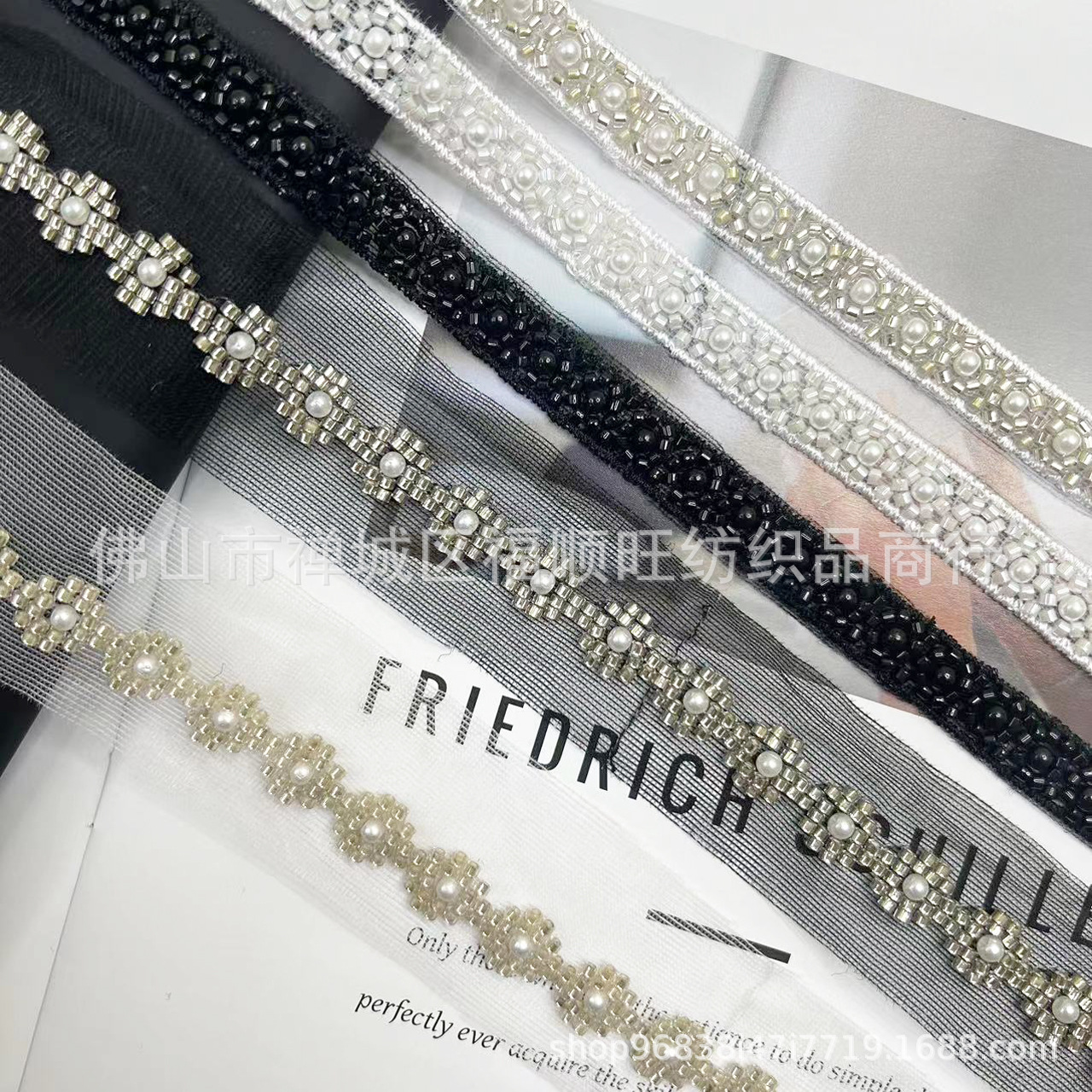 Machine Embroidery Double-Sided Polyester Silk Yarn with Beaded Lace Small Fragrance Pearl Barcode Clothing Hat Accessories