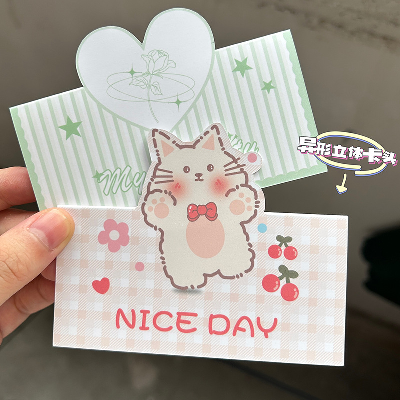 Cartoon cute folding card head ins style earrings hairpin jewelry packaging back card paper three-dimensional baking label printing