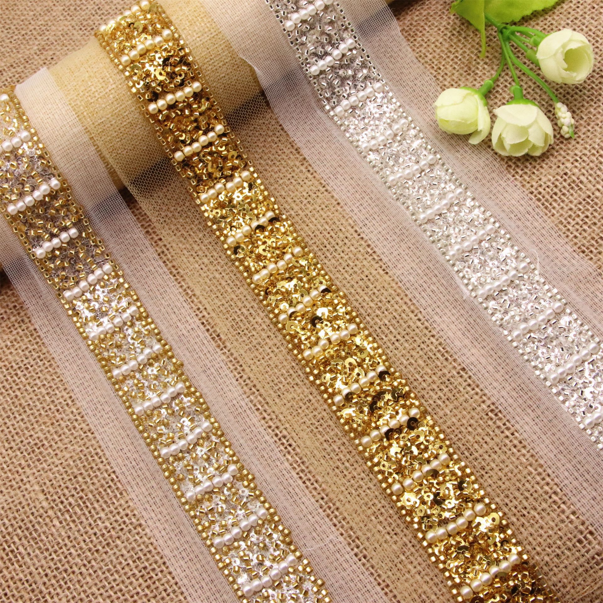 Factory in stock Machine Embroidery Lace Bar Code Pearl Lace Hand Beaded Lace Garment Accessories