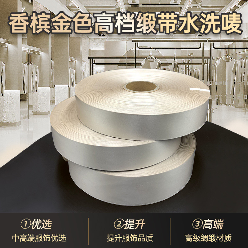 Gold Champagne Khaki Satin Washed Label Blank Printable Ribbon Clothing Ingredient Label Washed Label