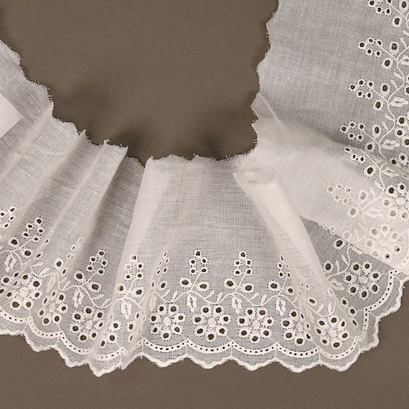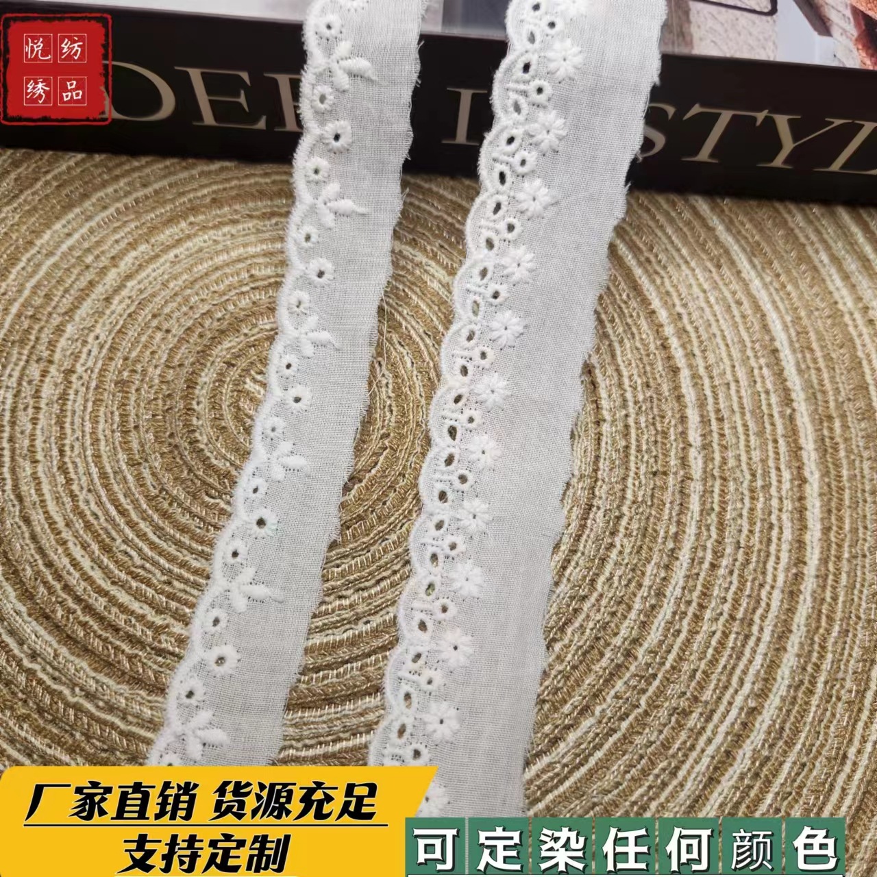 Single-Sided Embroidered Cotton Thread Lace with Cut-Out Patterns, Large Computer Embroidery, Water-Soluble Lace, Barcode Children's Clothing Skirt Hem Accessories