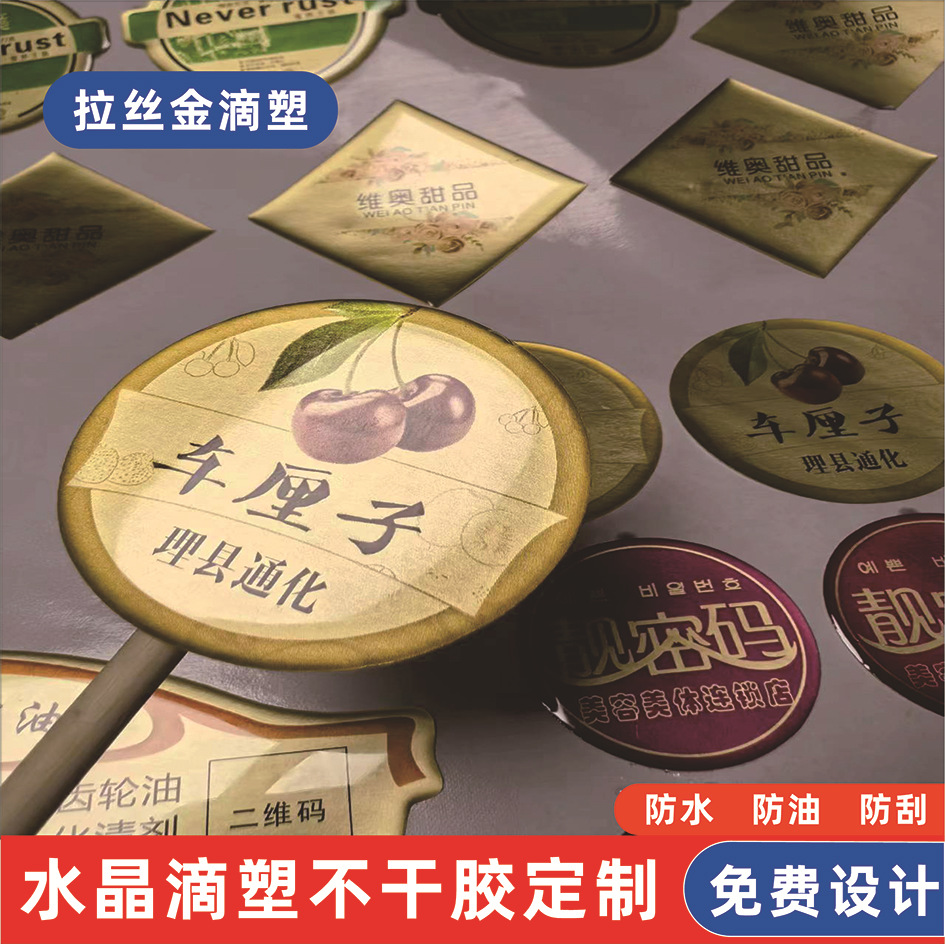 Crystal drop sticker sticker label four-color color logo drop plastic processing 3M drop sticker label