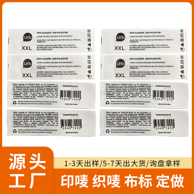 White wash label ribbon sxml size label flexographic printing component label supply hat bag luggage factory printing Mark mark