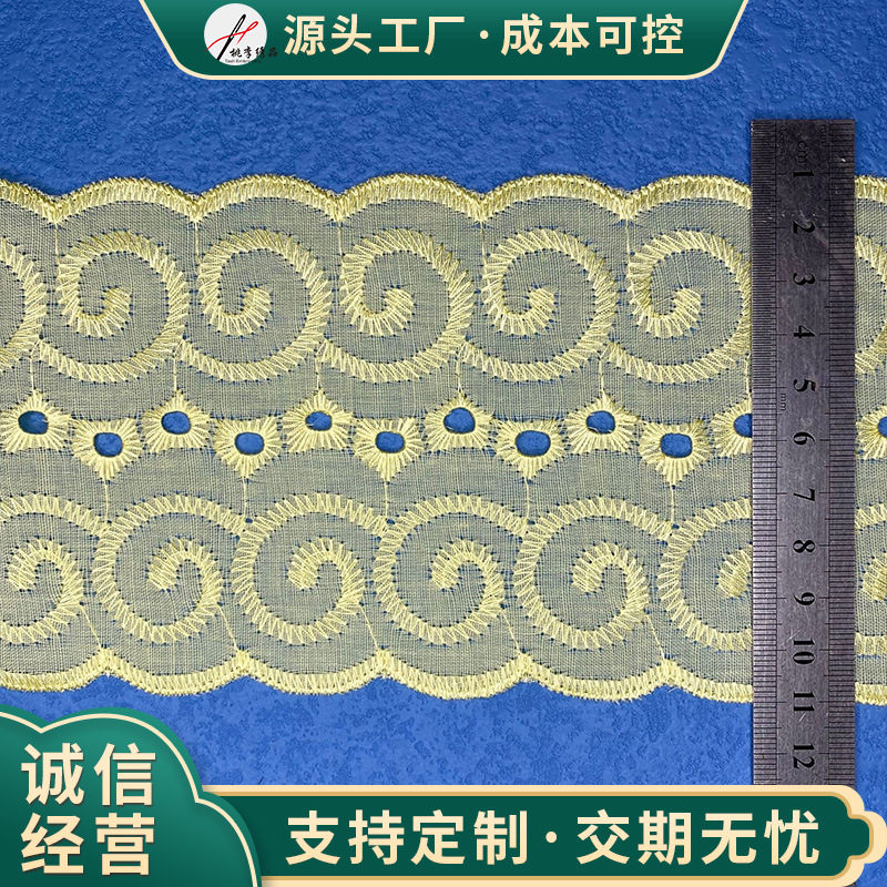 In stock computer embroidery bilateral wave lace hollow milk silk water soluble embroidery bar code lace clothing accessories