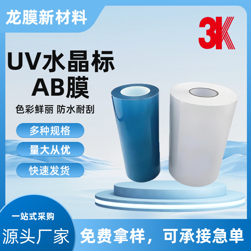 Crystal Label Uv Transfer Sticker Pressure-Sensitive Label Tear-Off Film Gift Logo Self-Adhesive Trademark Ab Film Raw Material