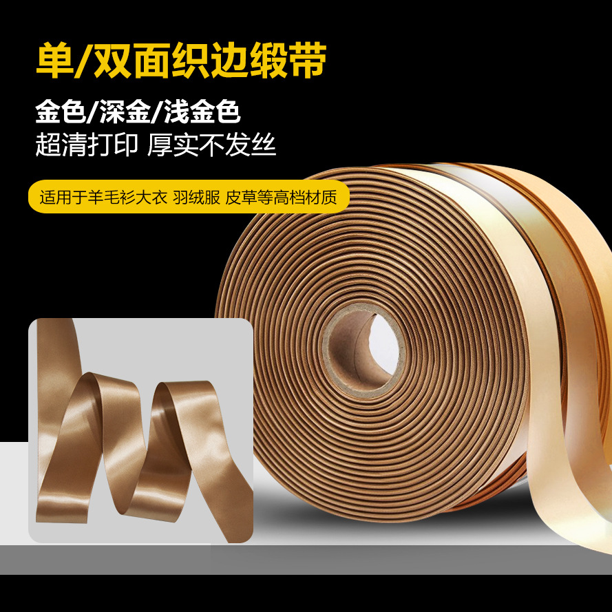 Gold Washed Label Webbing Satin Ribbon Washed Label Coffee Camel Blank Double-Sided Printing Barcode Webbing Ribbon