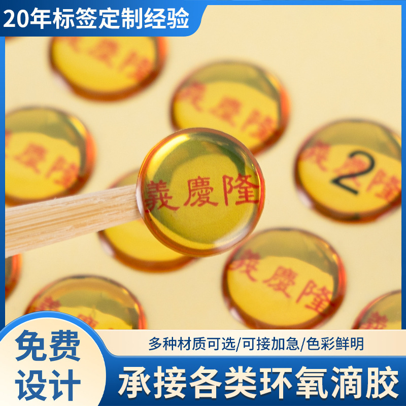 Crystal Glue Sticker Self-Adhesive Trademark Crystal Glue Logo Label Stereo Round Transparent Printed Logo