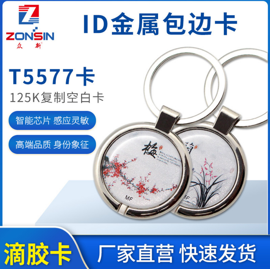 Spot Id Metal Edged Epoxy Card T5577 Chip Sensor Id Access Control Keychain Printable Pattern