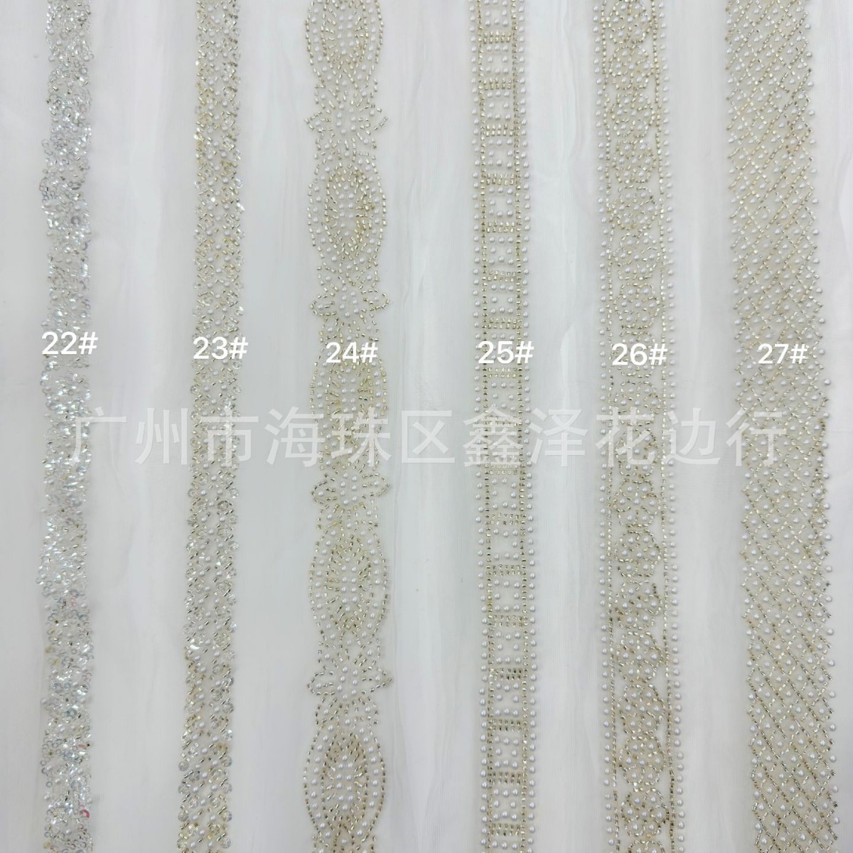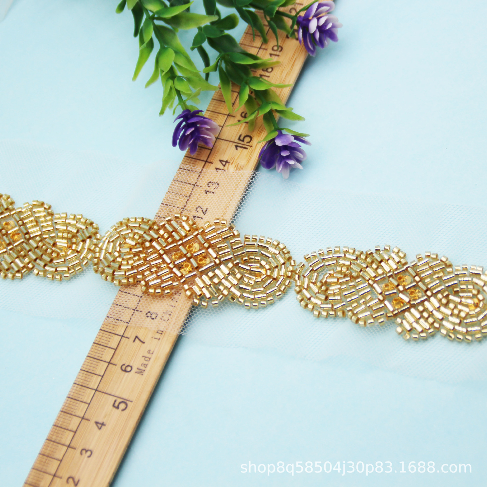 Factory wholesale glass bead code chain computer beaded embroidery lace beaded bar code lace hanfu dress clothing accessories