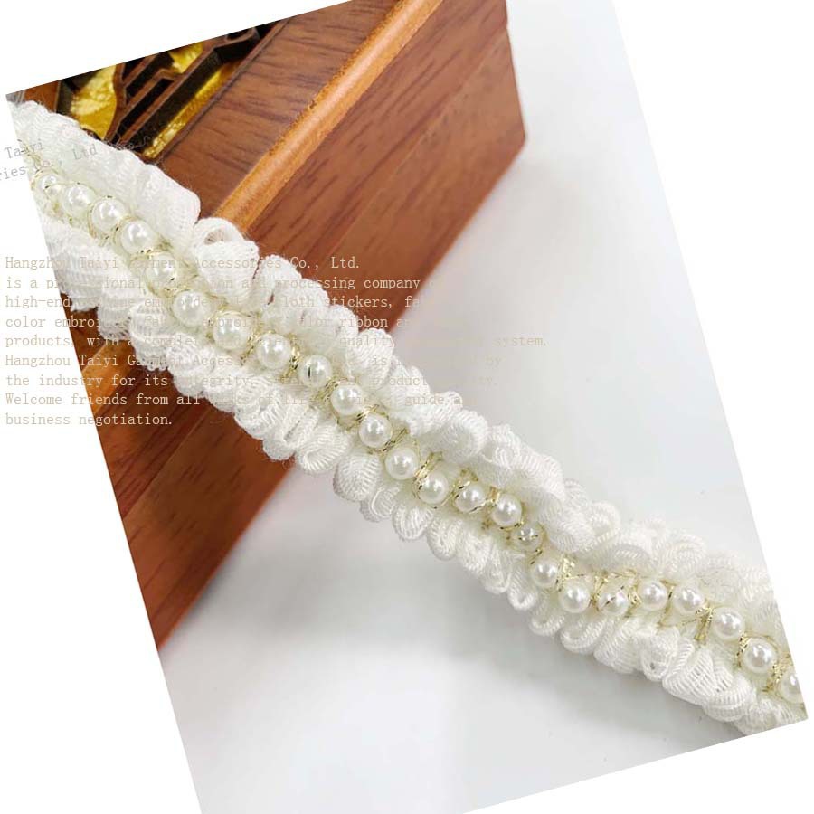 Factory direct pearl machine bead embroidery lace clothing collar luggage decoration barcode accessories barcode folding lace