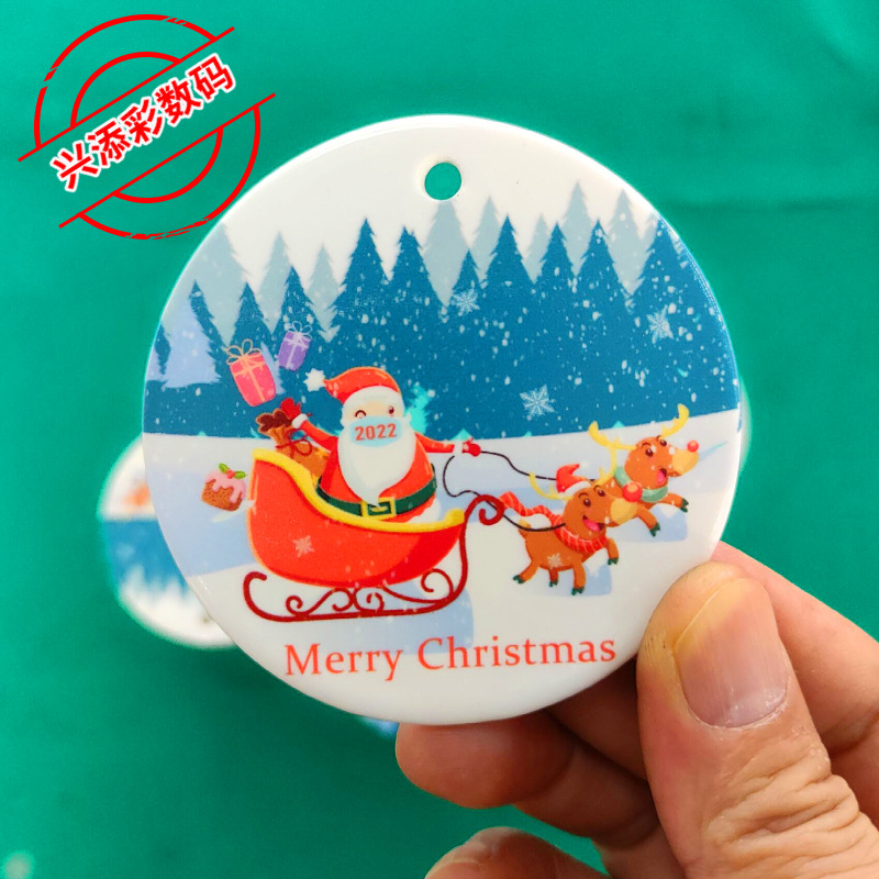 Christmas round porcelain hanging decoration UV color printing ceramic printing pattern UV inkjet printing factory