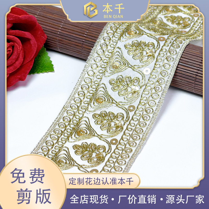 New national style lace accessories 5.5cm computer embroidery beads lace gold strand barcode manufacturers in stock batch