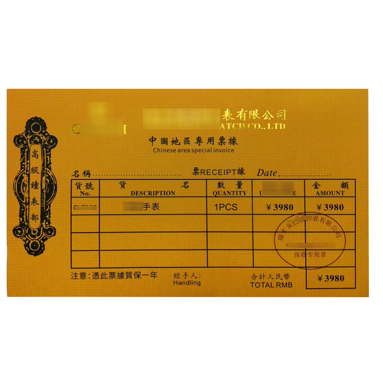 Hot Stamping Watch Warranty Receipt Jewelry Jewelry Receipt Hot Stamping Receipt