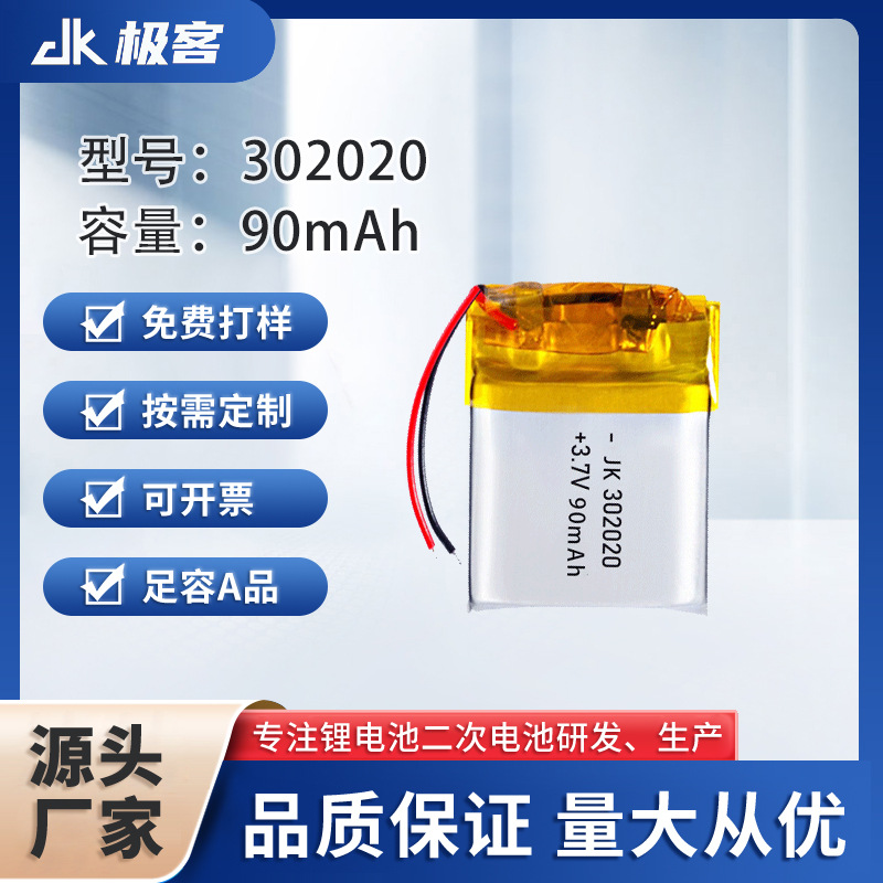 in stock A 302020 lithium battery 90mAh plus board plus line Bluetooth headset polymer battery smart bracelet