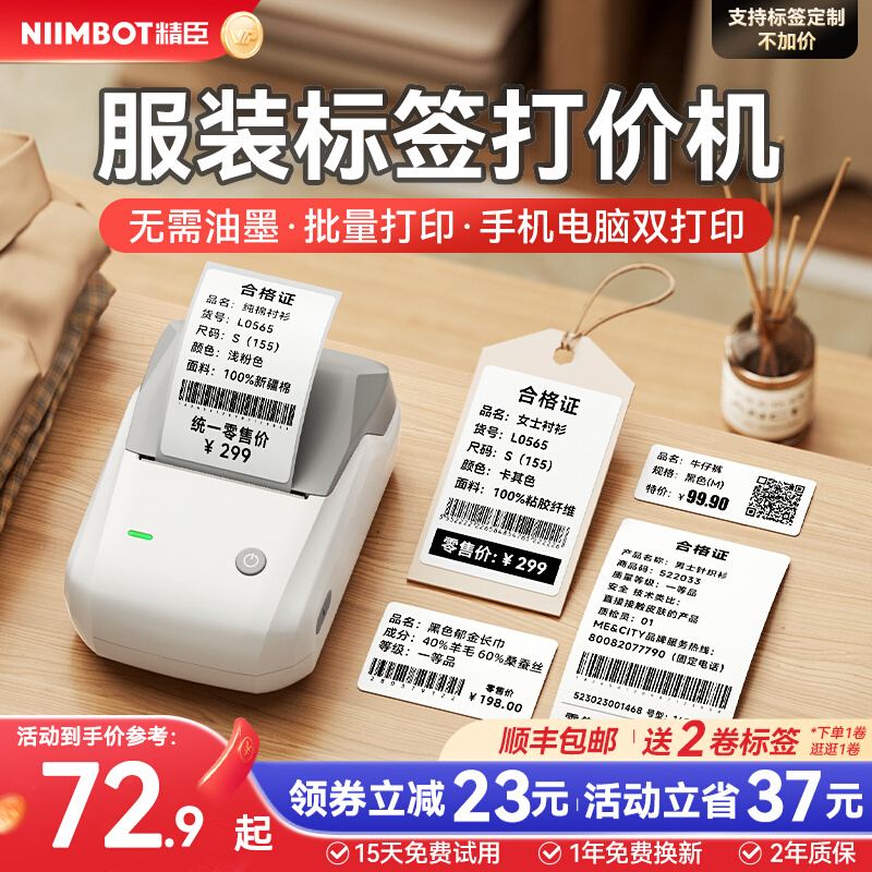 Jingchen B1 Clothing Tag Label Printer Small Commercial Certificate Adhesive Sticker Coder Price Tag for Children