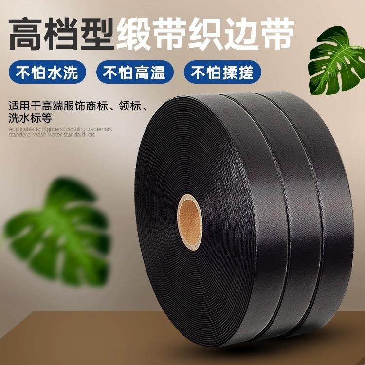 Black Woven Edge with Washable Label in Stock 200m /Roll Blank Washable Label Single-Sided Satin Ribbon Printable Trademark