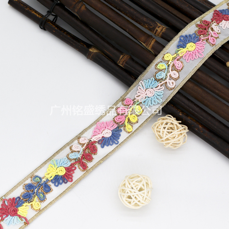 Ethnic embroidery lace color rope computer embroidery barcode Miao clothing collar skirt accessories webbing manufacturers wholesale