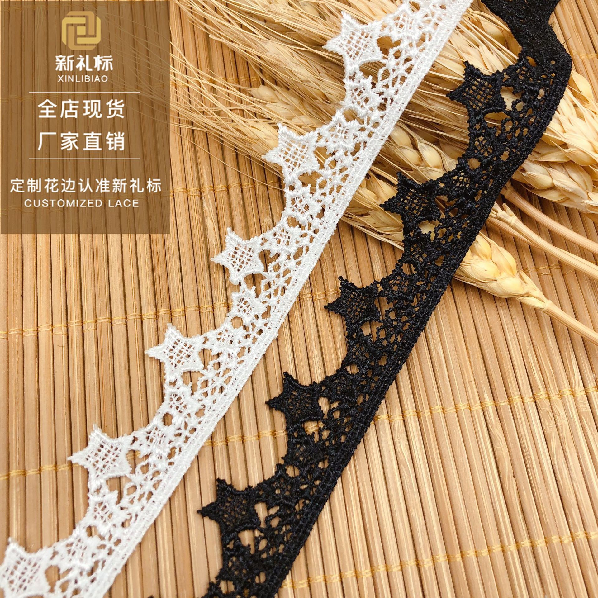 In-Stock Water-Soluble Polyester Barcode Lace Clothing Accessories DIY Computer Embroidery Lace Water-Soluble Lace Manufacturer