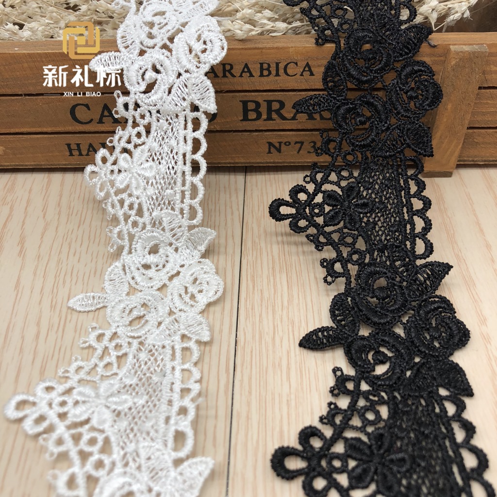 Milk Silk Lace Clothing Accessories Home Pajamas Barcode Computer Embroidery Black and White Ready-Made Dress Accessories Lace