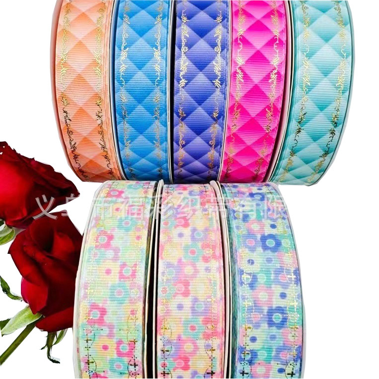 2.5cm digital printing heat solid bronzing cross European pattern Factory Direct bar ribbon New