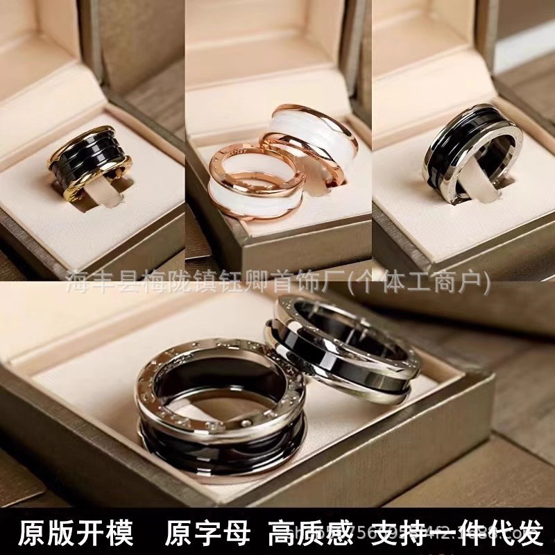 High-Quality Bv Family Charity Black Ceramic Ring Rose Gold Spring Couple Rings Men and Women Rings Cross-Border Dropshipping