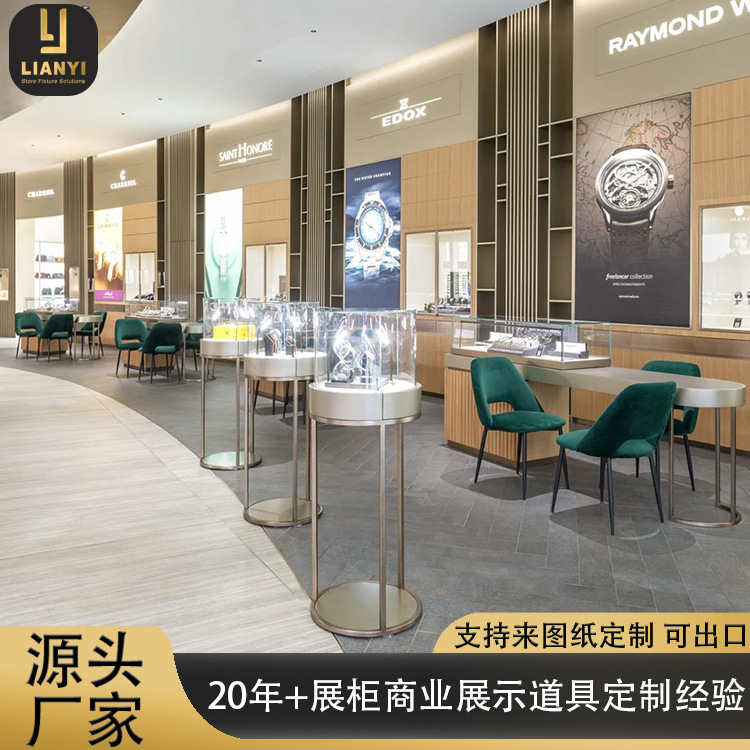 Multi-Brand Luxury Store Counter Display Cabinet Customized Classy Watch Display Counter Titanium Stainless Steel Glass Cabine