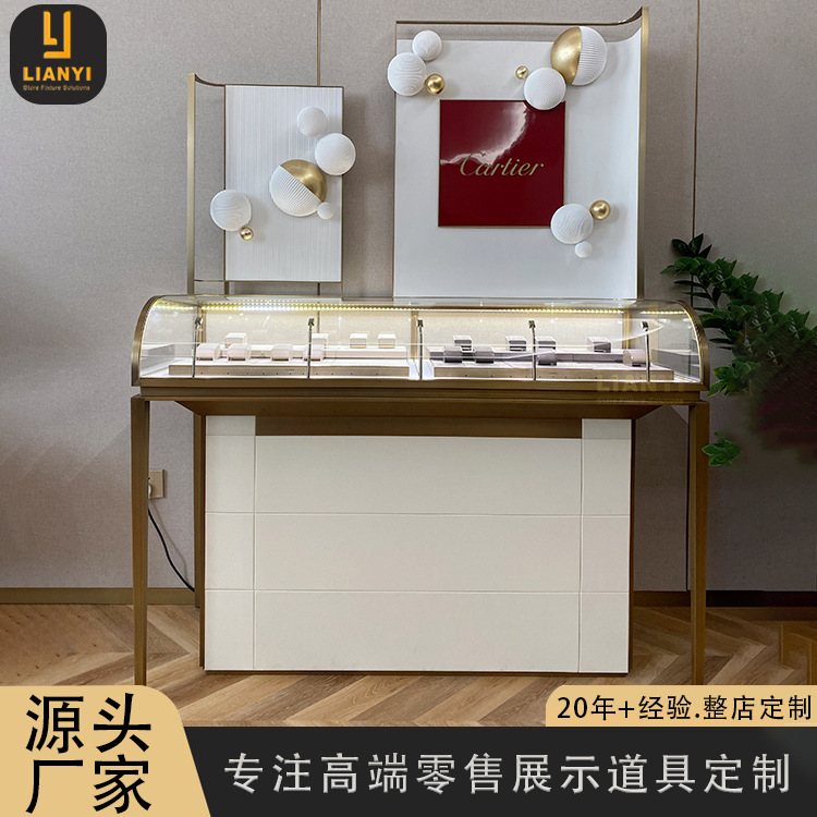 Luxury Goods Container Gold Jewelry Store Design Classy Display Cabinet Shopping Mall Jade Jade Display Stand Customization