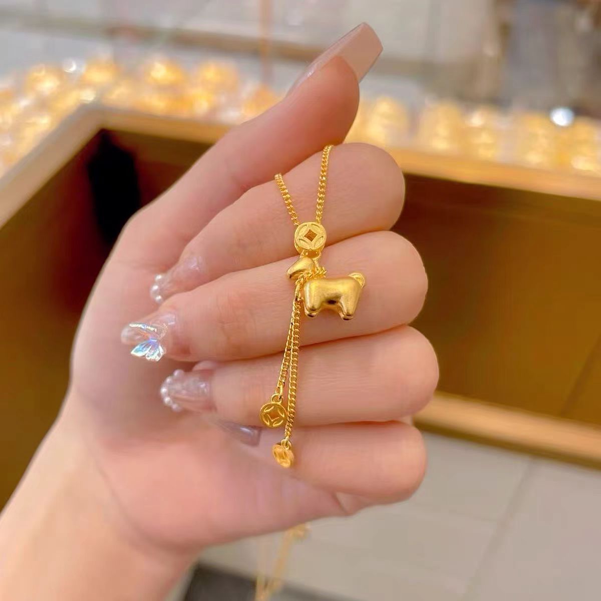 Gold Store Same Style Sand Gold Jewelry, Get Rich Immediately Necklace, Niche Light Luxury High-End Clavicle Chain, Gift for Girlfriend
